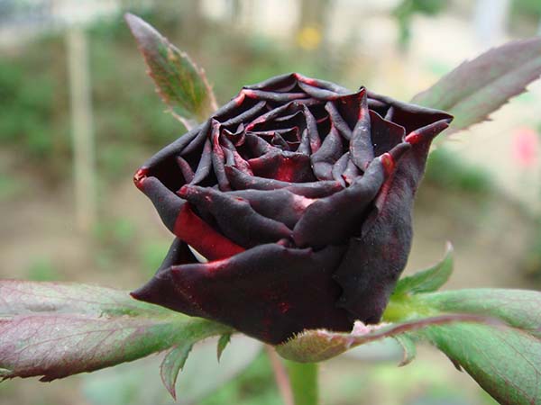 黑魔術和卡羅拉很像,唯一的不同是顏色,顏色是深紅,感覺有點偏黑,晝夜溫差不大的時候,花型好過卡羅拉,初看它并不顯眼,但細細品味才發(fā)現(xiàn)她黑得神秘美麗。常見的黑色月季切花有兩種,一種就叫“黑魔術”,花型規(guī)則美觀,厚厚花瓣上黑色中透著紅色,紅色中又透著黑色,有種厚厚的絨感,給人以華貴神秘之感。