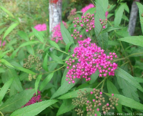繡線菊,植株總高度0.4~1.9m高之間,葉子形態根據種類不一樣有差別,有一些細長,有一些比較圓,繡線菊花顏色是豐富,如桃紅,粉紅色,深黃色,粉白色等,花開的時間很長,花量巨大,每年的開花時候從6月中旬到8月下旬,種子9~10月才熟,有較高的出芽水平。